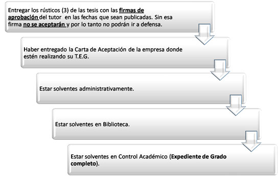 Requisitos académicos y administrativos exigidos para la defensa del Trabajo Especial de Grado
